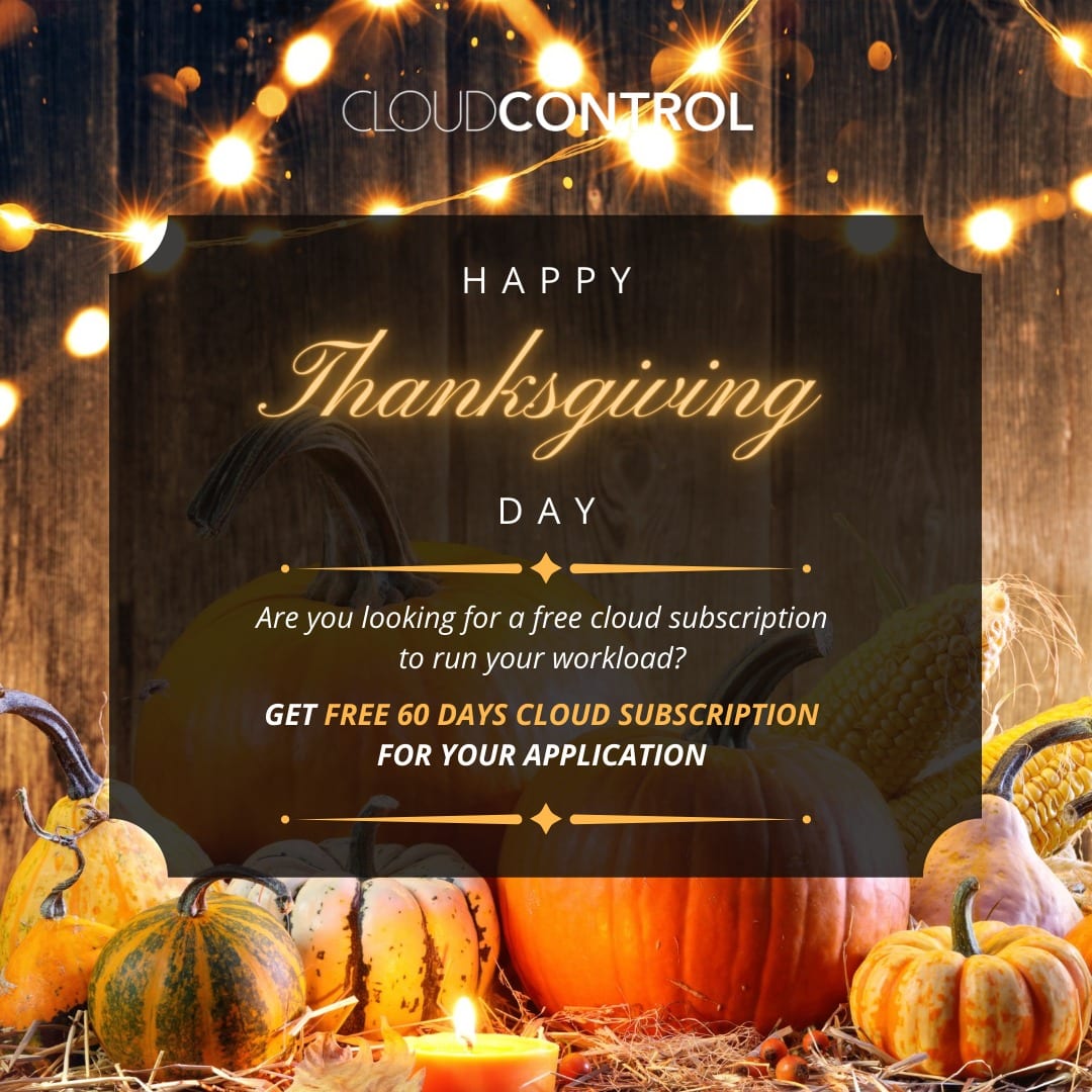 Moreover, acknowledging and being thankful is what our special day is dedicated to each year. So by sharing the spirit of “giving” this celebration we “Thank our CloudControl Team” with very relevant offers.
